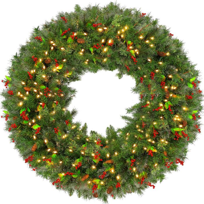 Large Christmas Wreath w/ 200 LED Lights, Pinecones & Berries (48")