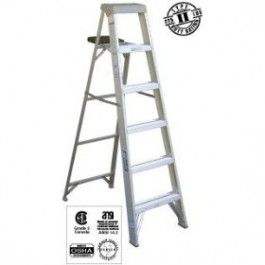 LOUISVILLE LADDER GROUP LL AS4008 8' TYPE II ALUMINUM STEP LADDER Molded Top with parts tray-mold top provides exceptional- stiffness and rigidity Molded pail shelf-non-skid surface and outer retaining edge- provide additional features Heavy duty plated steel spreader braces with double rivet- hinge protect user from pinched fingers Aluminum angle feet with thick rubber tread on all four legs to provide sure footing Side rails-heavy duty aluminum side rails are full channel extrusions on the front and back legs