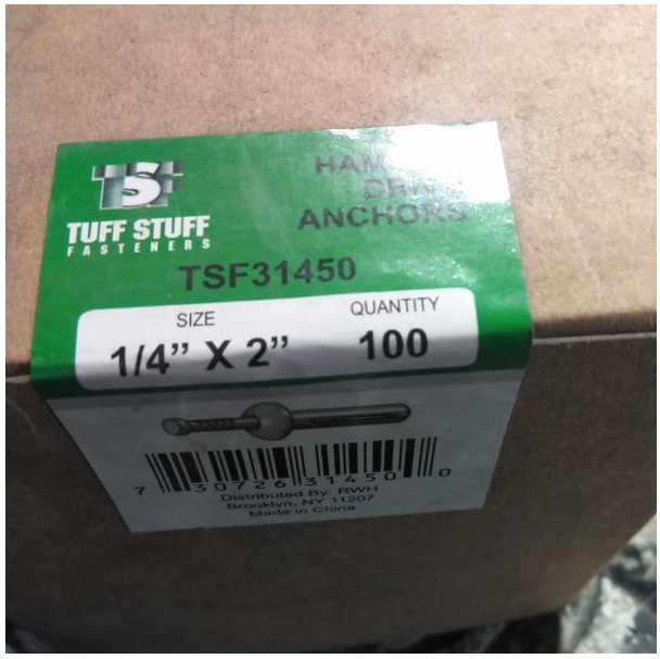 Hammer Drive Anchor (100 Box) (1/4" x 2")