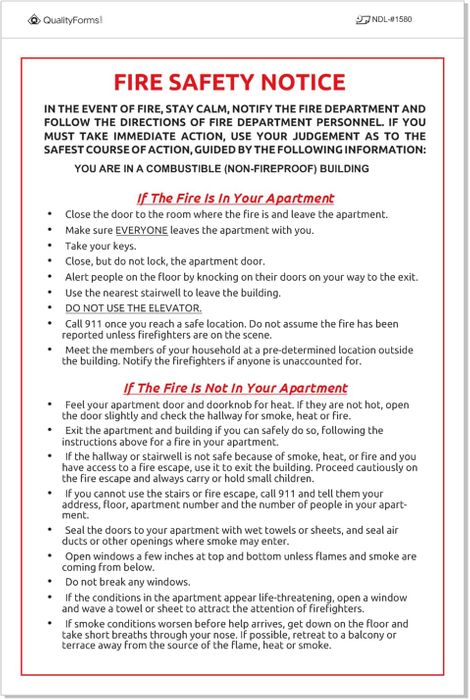 Combustible Apartment Fire Safety Notice Sign (Vinyl) (5.5" x 8.5")