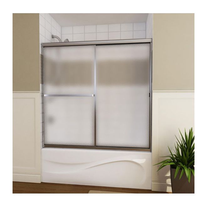 Sliding Tub Door for Alcove Installation (Hammer glass) (Mat Silver) (54" - 59 1/2" x 55 1/2")