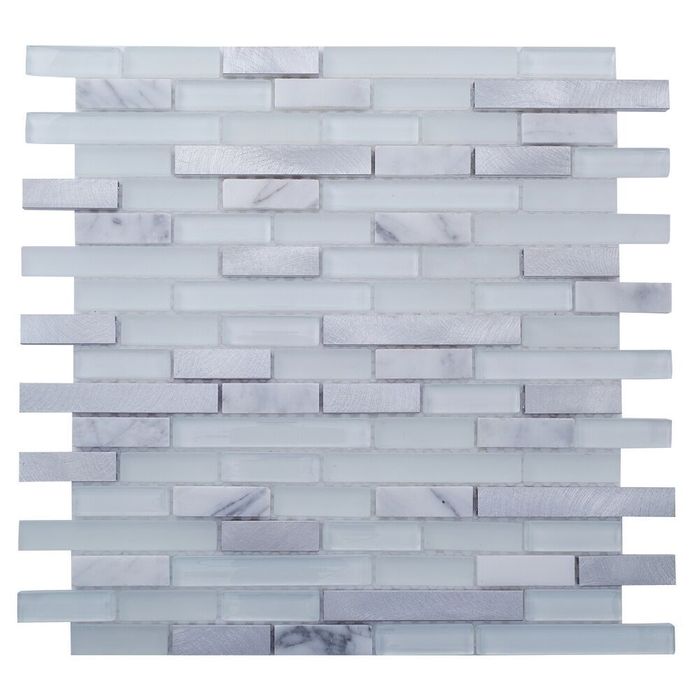 Vetro Marmi Mosaic Tile (Carrara & Steel) (12" x 12")