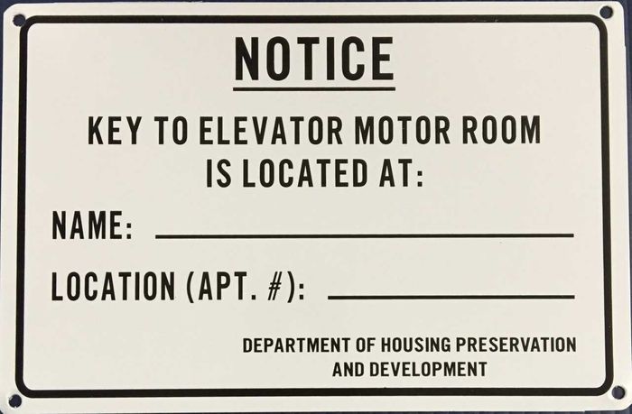 Key To Elevator Motor Room Sign (Metal) (9"x6")