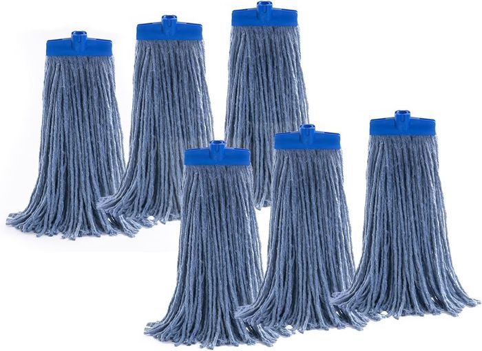 Heavy Duty Cotton Wet Mop Replacement Heads (Blue) (Large) (6 Pack)