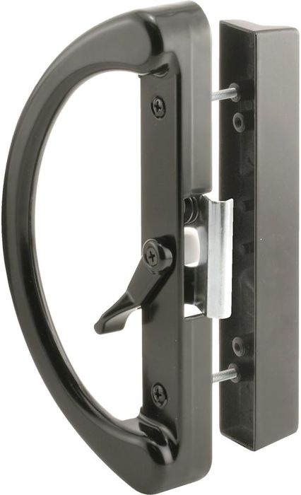 Prime-Line Non-Keyed Sliding Glass Door Handle Set, Black Diecast, Clamp Style, Surface Mount, Fits 4-15/16� Hole Spacing