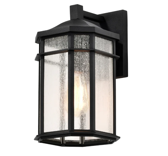 Raiden Outdoor Wall Sconce with Seedy Glass Shade and Matte Black Finish ( 9" Tall)