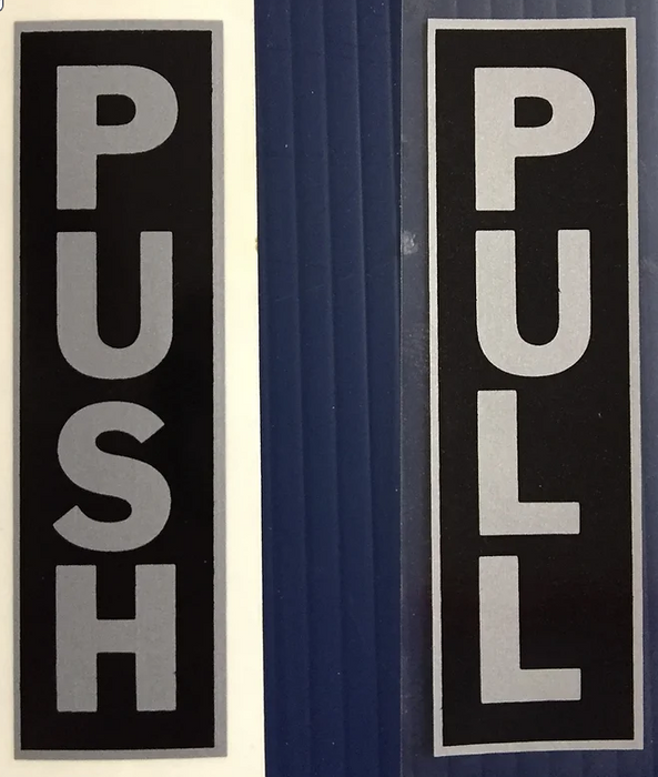 Push - Pull Sign (Peel & Stick) (Silver on Black)