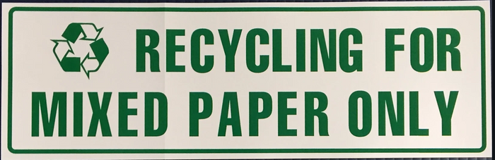Recycling for Mixed Paper Only Sign (Vinyl) (4"x12")