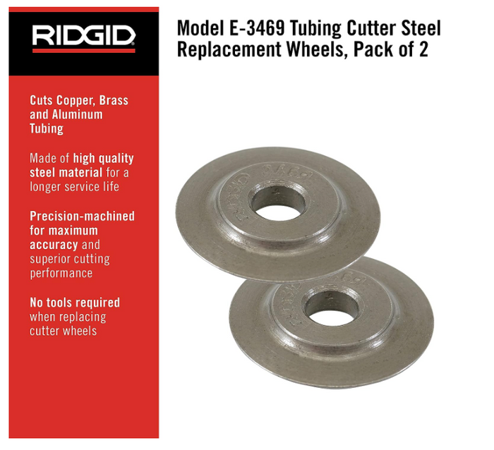 Ridgid E-3469 Tubing Cutter Steel Replacement Wheels (2 Pack)