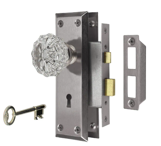 Glass Knob Mortise Lockset - Entry (Satin Nickel)