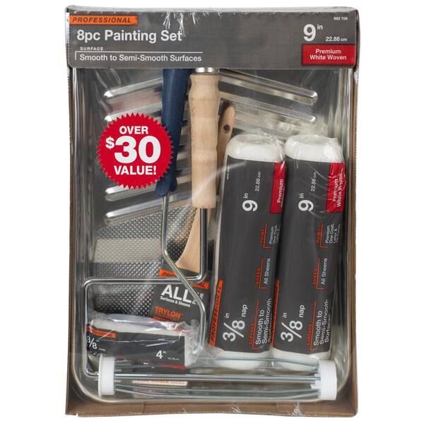 Shed Resistant White Woven Paint Tray Kit (9") (8 Piece)