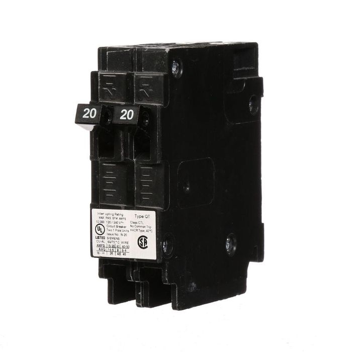 Siemens Q2020 Circuit Breaker 20/20A 1 Pole 120V 10K QT DUPLEX