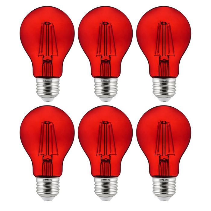 A19 LED Light Bulb, Filament, Dimmable ( (E26) (Red) (4.5 Watt) (6 Pack)